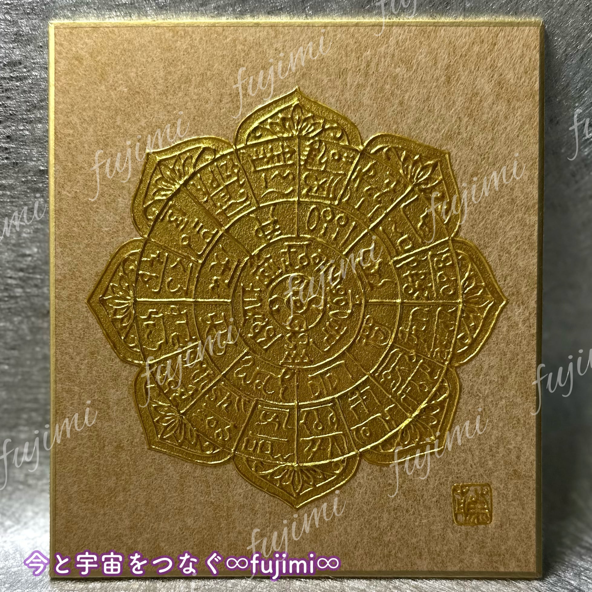 ゴールドのミニ色紙に描いた3Dアートのエネルギーアートです